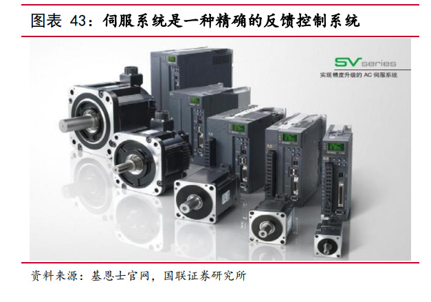 从产品参数上看,国产品牌与国外品牌差距不大,目前差距主要在产品的稳定度、 行业的认知和工艺的积累上。伺服系统的主要性能指标包括编码器分辨率、电机过载 能力、电机最高转速、频率响应速度。目前国内厂商已经具备自主研发伺服驱动器、 伺服电机和高端编码器的能力。