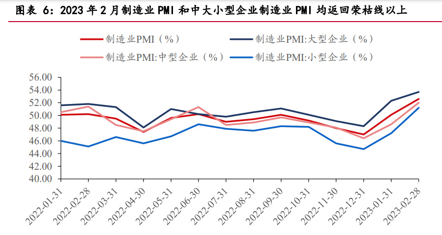 2023 年 2 月,制造业 PMI 和大中小型企业制造业 PMI 均返回荣枯线以上,分 别为 52.6%、53.7%、52%、51.2%,我们预计 2023 年制造业将复苏。从 2022 年 10 月-2023 年 2 月的制造业 PMI 和大中小型企业制造业 PMI 数据来看,大型制造企 业率先恢复生产经营情况,中小型制造企业紧随其后。大型企业主要集中在项目型市 场,中小型企业主要集中在中游制造装备和上游元器件以及下游 OME 市场,其订单 和利润改善,将支撑整个工控设备行业的增长。