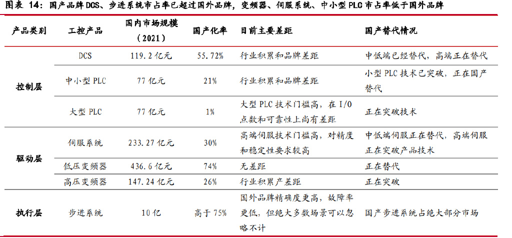 2.1 高端 DCS/PLC/伺服/高压变频器等具有较大的国产化空间