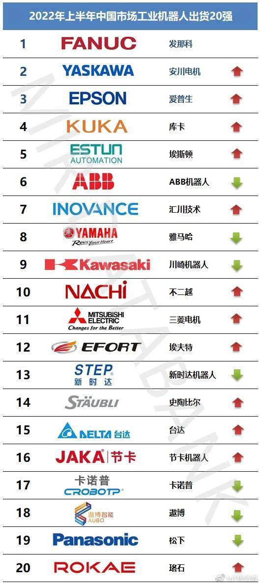 睿工业数据显示,在国内机器人厂商出货量排名中,埃斯顿、汇川技术、埃夫特位居是国内工业机器人出货量前三。报告指出,埃斯顿、汇川和埃夫特是凭借在光伏和锂电行业的布局吃到红利,上半年出货增长较快。
