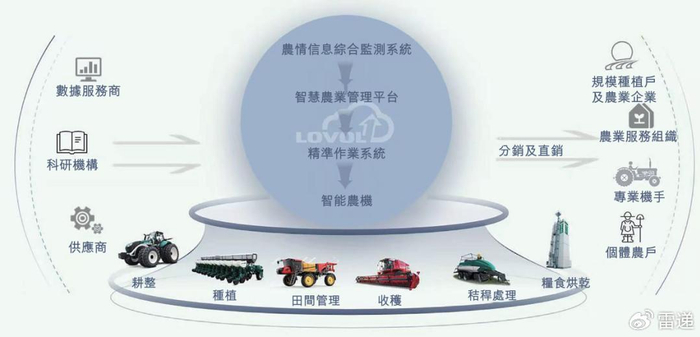 2,智慧农业服务,以农机作业实时数据为核心,融合IoT、人工智能与大数据技术,全面感知土壤、作物与环境状态,借助AI模型智能分析数据生成精准作业决策,并指导智能农机开展协同化精准作业。