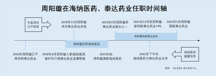 且泰达药业监事、原股东周阳璇,为海纳医药的前员工。泰达药业由周阳璇于2015年参与设立。